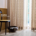 ベージュより少し濃いブラウンの綺麗な色彩に、ふっくらとした花をモチーフにシルエットでデザインされた【ナチュラルモダン】のドレープカーテン。