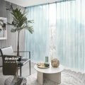 大きな葉を淡いライトブルーの水彩調でデザインした【ミッドセンチュリー】のレースカーテン。