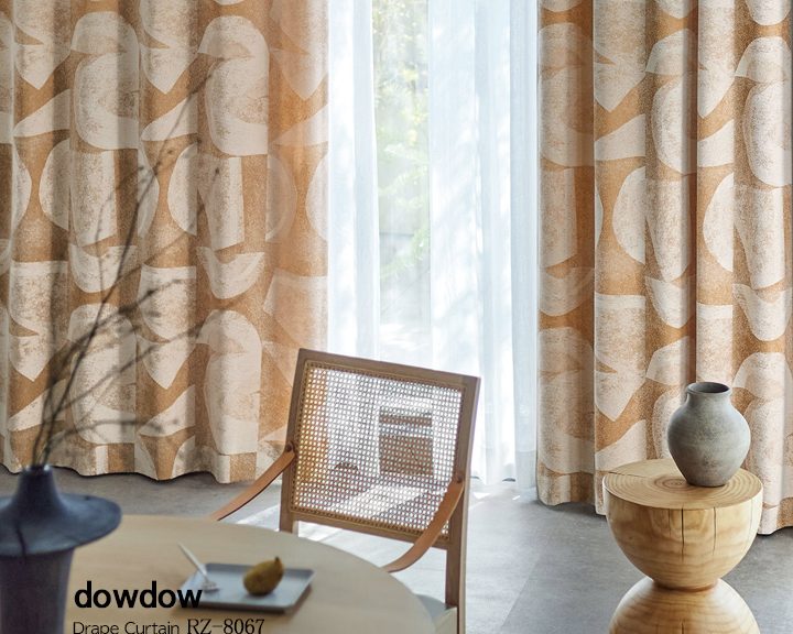 【ミッドセンチュリー】レトロでナチュラルな幾何学柄のカーテン【RZ-8067】オレンジベージュ