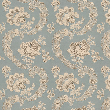 ブルーグレーの地に色とりどりの小花を風格のあるゴブラン織で表現しました。