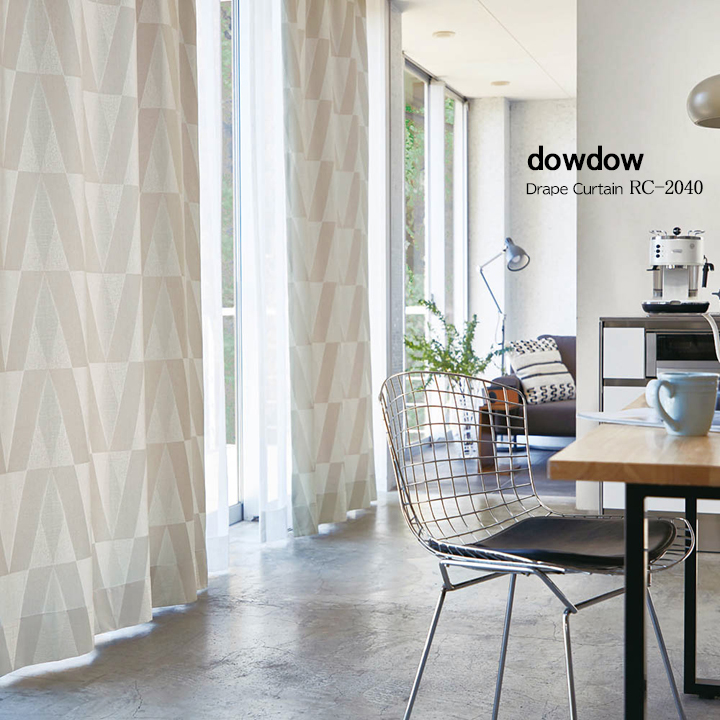 【ミッドセンチュリー】ワントーンの幾何学柄のドレープカーテン【RC-2040】ベージュ