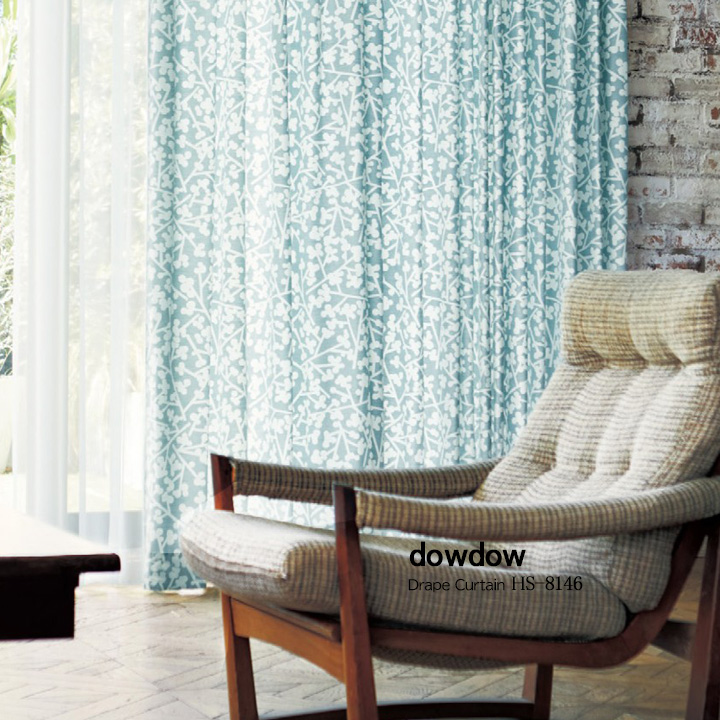 【北欧モダン】フレッシュなハーブ草柄のドレープカーテン【HS-8144】ブルーグリーン