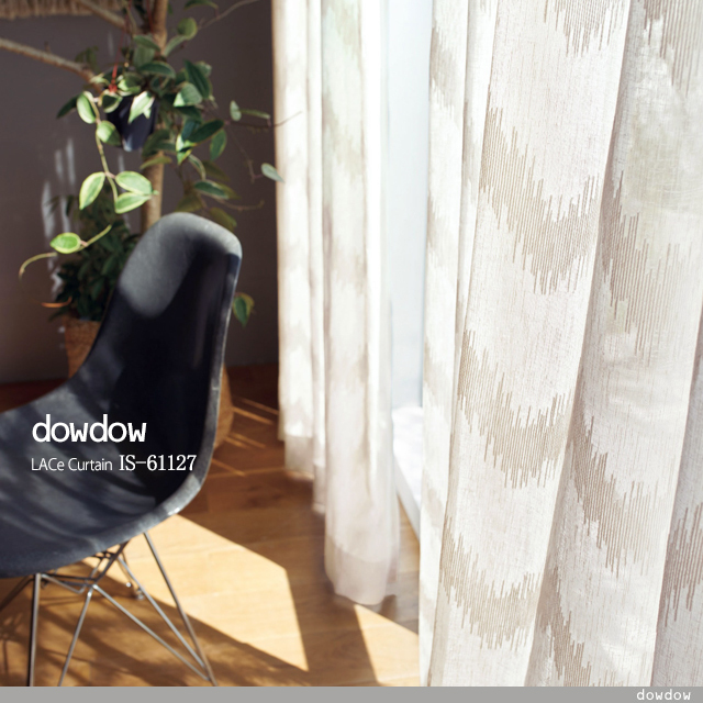 【ミッドセンチュリー】バックカットのシェプロン柄のレースカーテン【IS-61127】グレージュ
