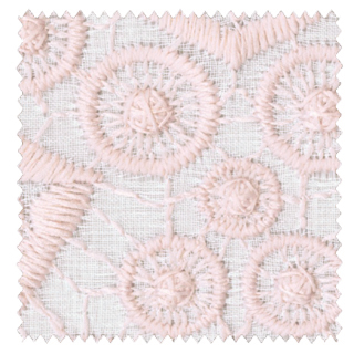 コットン調のナチュラルな風合いのベース地に、ローズ・ピンクの刺繍でクラシック・デザインに仕上げたレースカーテン。